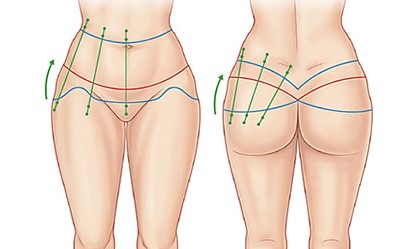Abdominal area – locally or extending around the sides and into the lower back area Buttocks, Thigh – the inner, outer or posterior thigh, or the thigh’s circumference