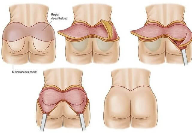 Buttock lift procedures are surgical procedures and they may require extensive incisions. Incision length and pattern depend on the amount and location of excess skin to be removed,  Advanced techniques usually allow incisions to be placed in strategic locations where they can be hidden by most types of clothing and swimsuits.